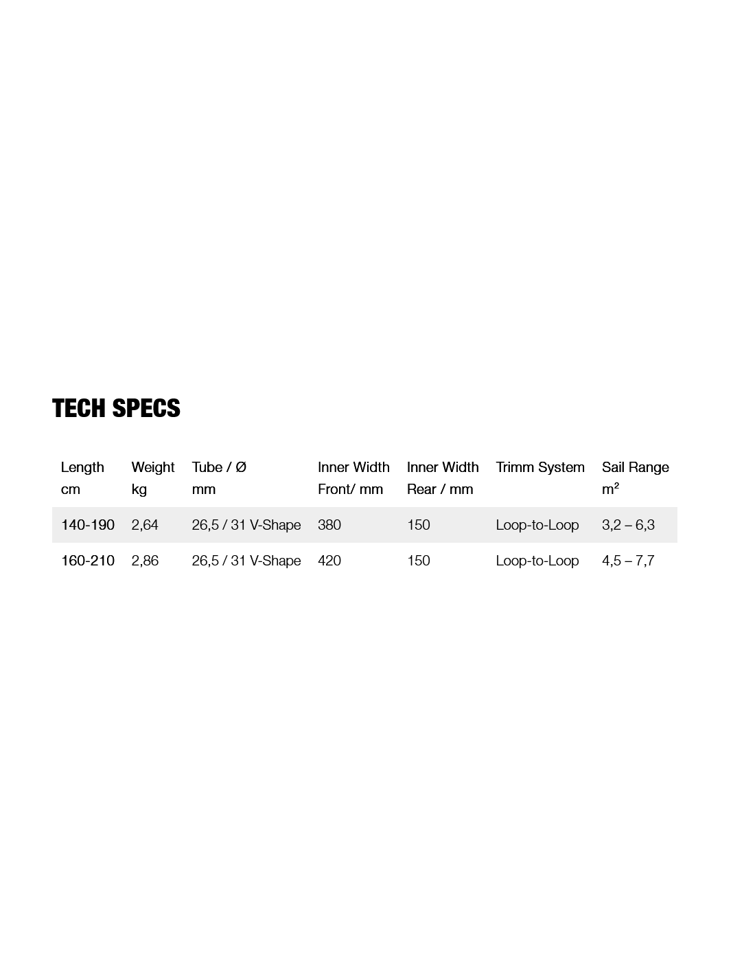 This makes the boom slightly wider at the rear, bigger freeride and freerace sails now have less contact with the inside of the boom.