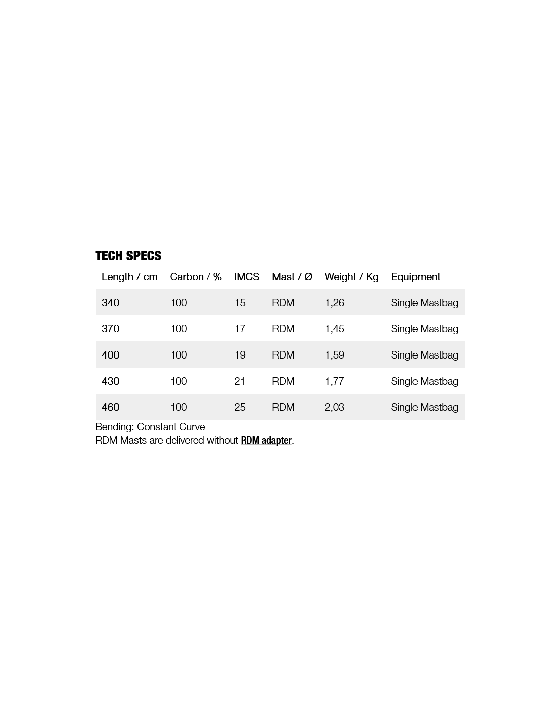 Windsurfing mast Gunsails Select Maximum performance with minimum weight, the Select class is the absolute optimum for your sail. It combines the fastest response and dynamics to a high-end product. 100% carbon is the benchmark for all sailors who want to get the most out of their sails and for whom extremely light handling is important. The best mast - from wave to race.