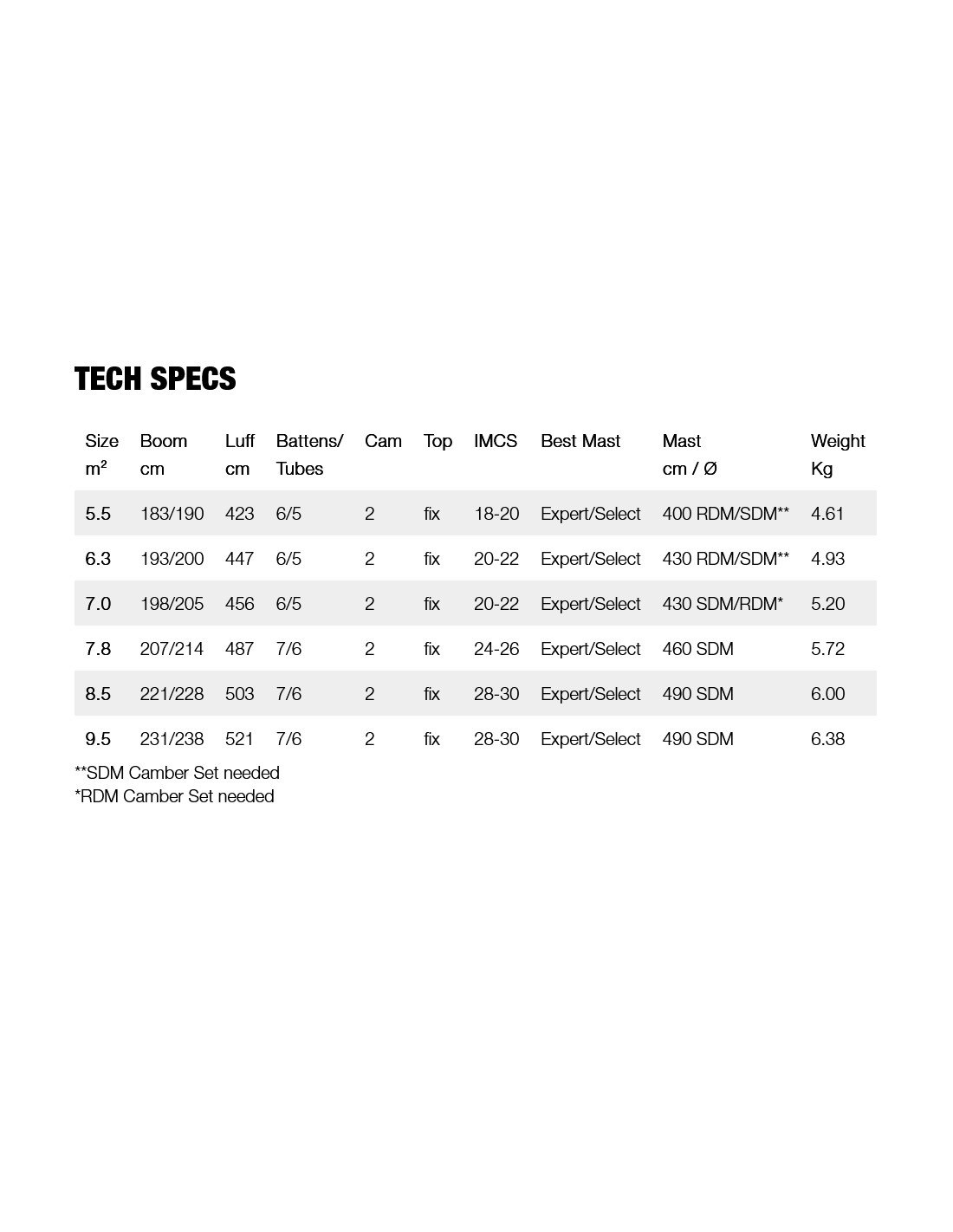 The GUNSAILS SPECTRO 2026 is your direct entry into the freerace upper class – without the harshness of a pure racer. It combines power, control and easy handling. With a moderate mast sleeve, six or seven tube battens (depending on size) and two cambers, this sail provides a self-stabilising profile designed for speed and long-distance performance.