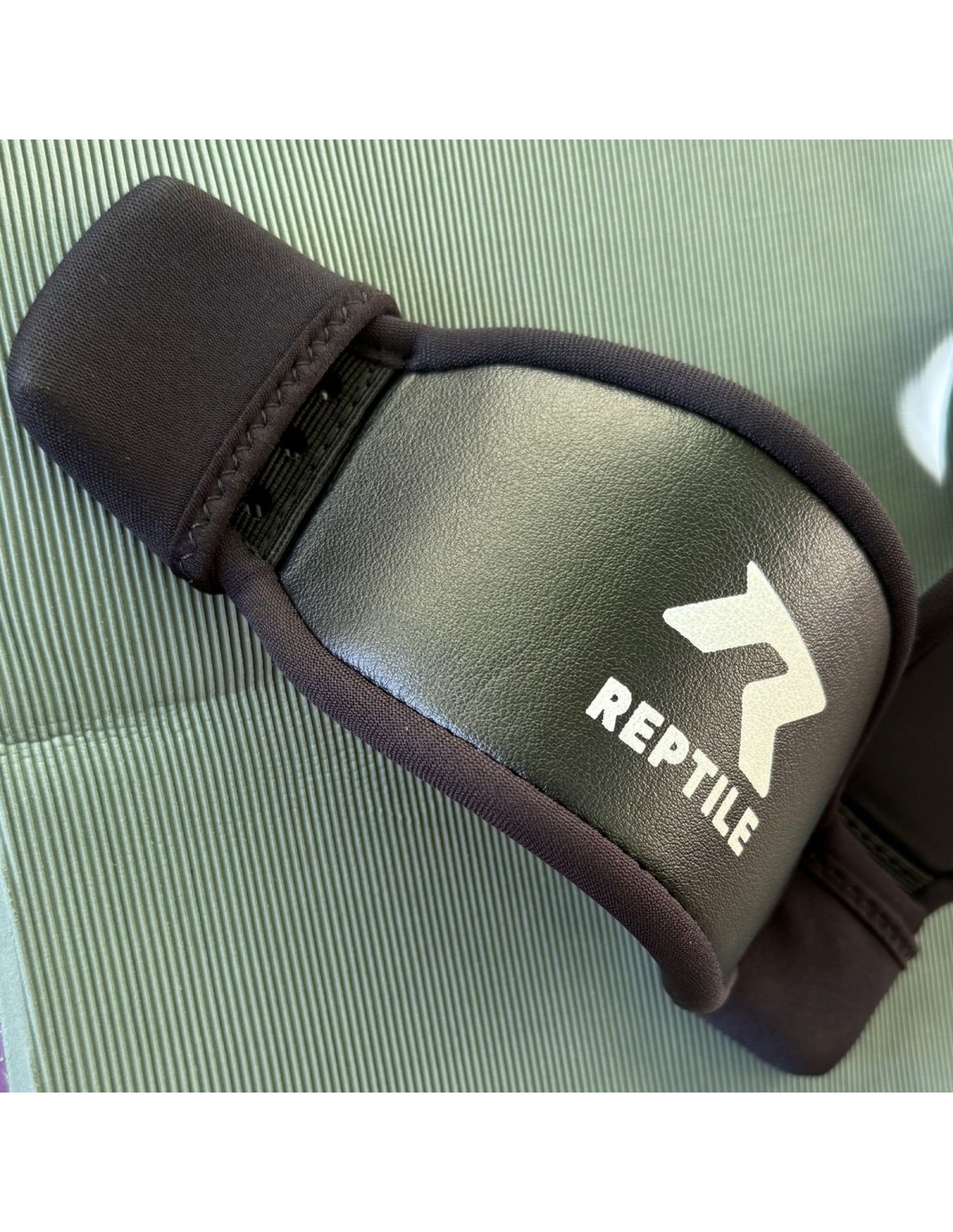 Prodotte utilizzando 10 mm di Eva foam ricoperta da 5 mm di morbido neoprene, le V-straps REPTILE sono complete di piastrine di fissaggio in acciaio e possono essere utilizzate su ogni tavola da wingfoil.