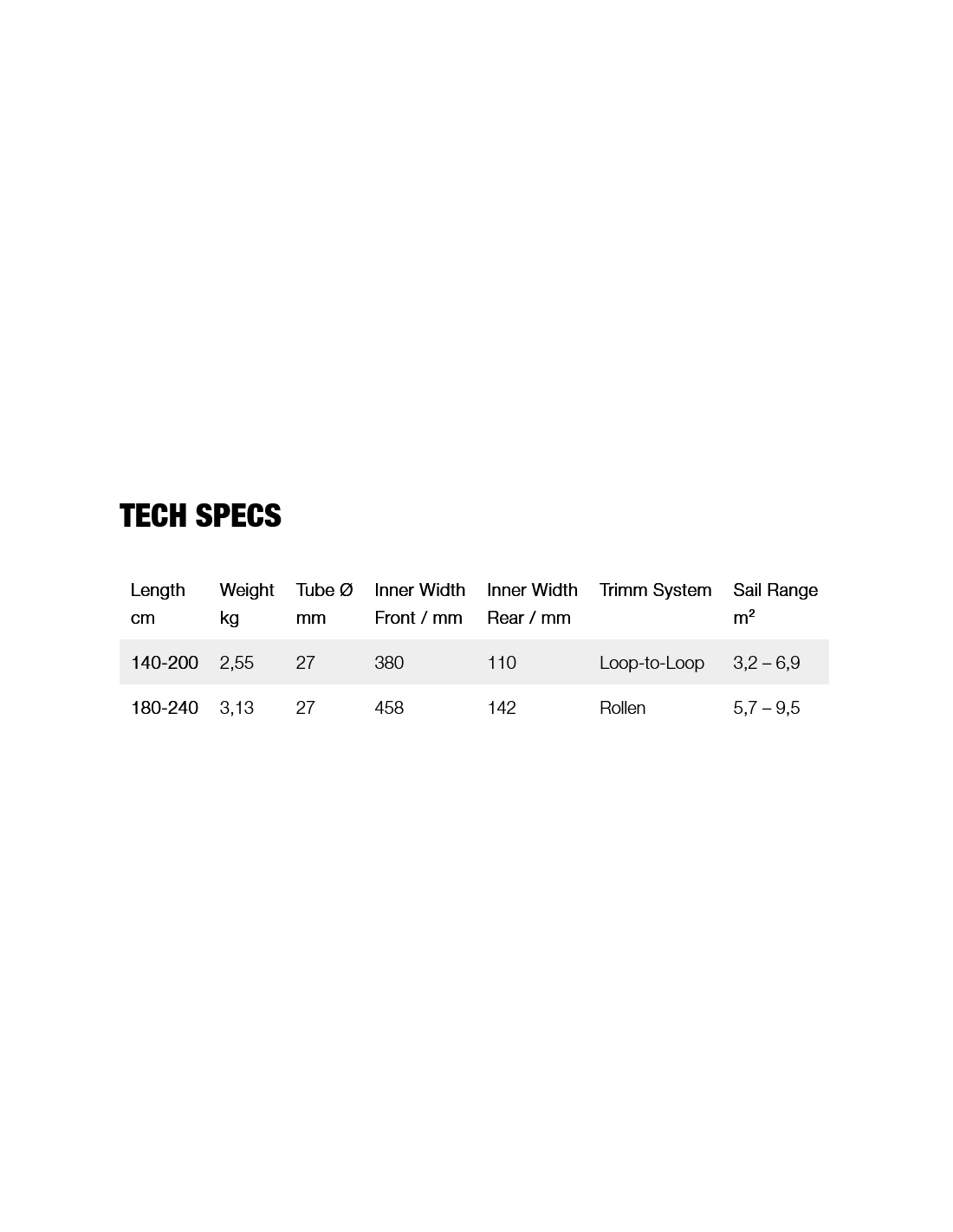Massima estensione per vele di grandi dimensioni – maggiore rigidità grazie all’alto contenuto di carbonio e roller trim per una regolazione precisa.