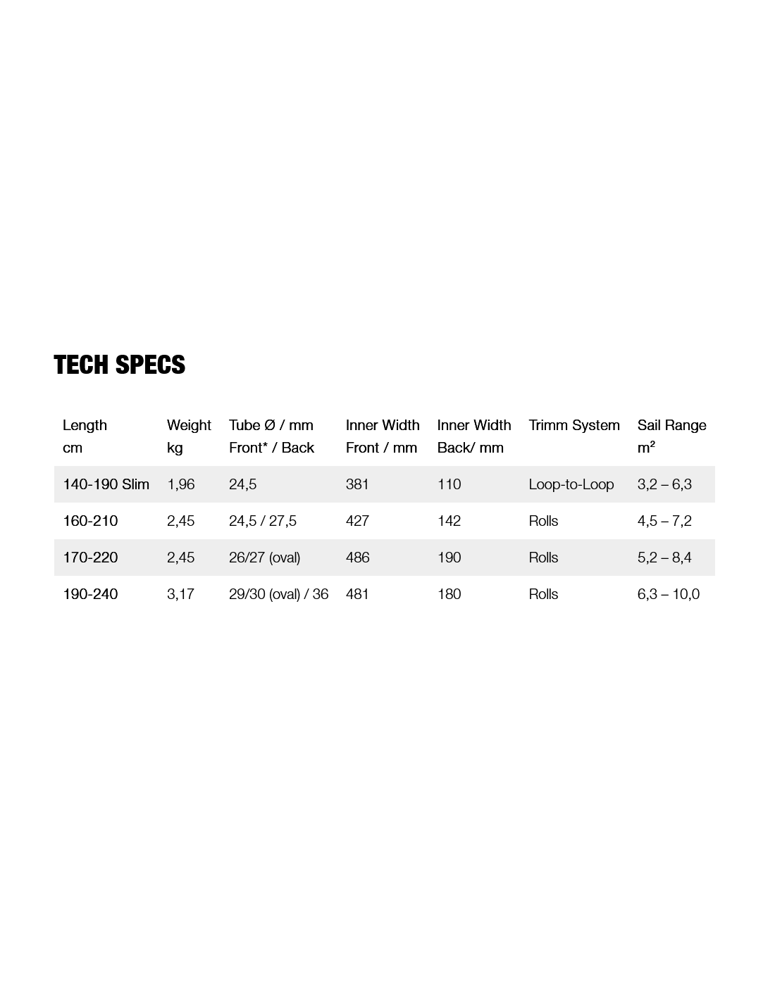 Con una larghezza frontale di 486 mm e uno square tail generoso, progettato per vele a profilo profondo, questo boma garantisce potenza senza compromessi, dalla planata anticipata fino alla massima velocità.